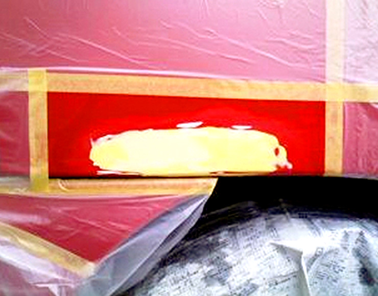下地処理した後凹んでる部分に厚付けパテ盛を盛ります。