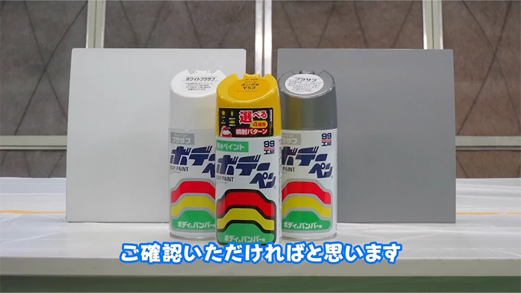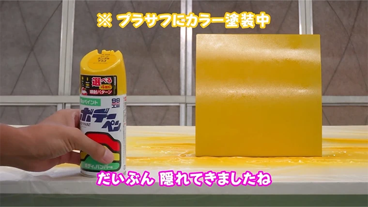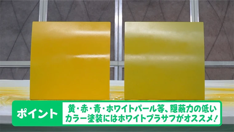 スギオカ最初に申し上げた通り、隠蔽力の低いカラーの場合はグレーの『ボデーペン プラサフ』だと塗装回数もかなり多くなってしまうので、『ボデーペン ホワイトプラサフ』を使用していただくのが効率的だとわかってもらえたかと思います。