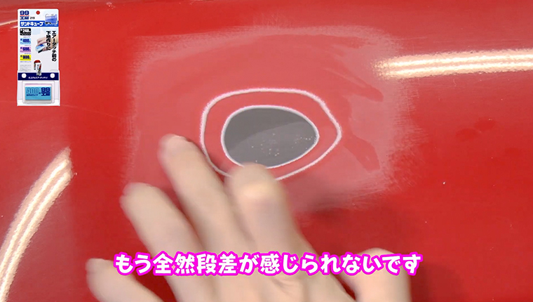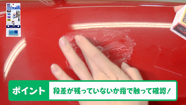 スギオカある程度研磨できたら、キズ部分の段差がどうなっているか手で確認してみてください。いろんな方向に触ることでデコボコがあるかどうかが自分でもわかるかと思います。
