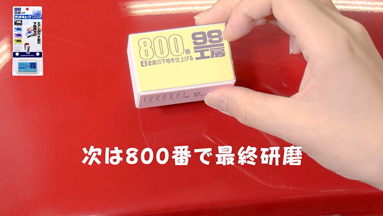 スギオカでは800番で最終研磨をおこなっていきます。もう仕上げになりますので、今研磨した部分より、やや広く研磨していってください。