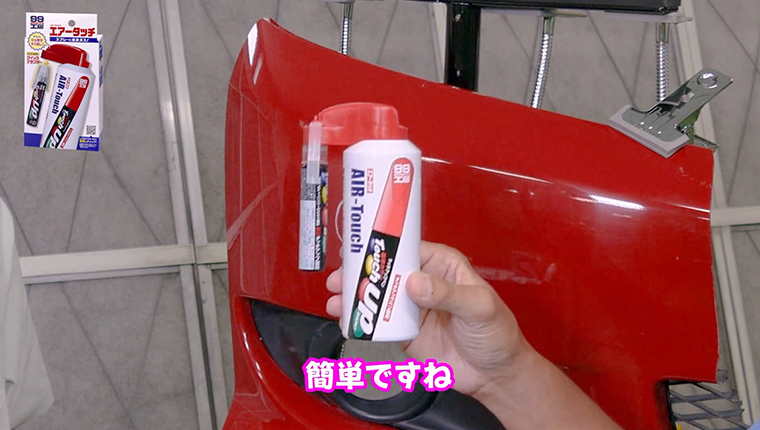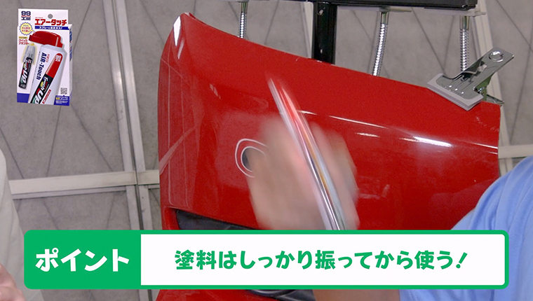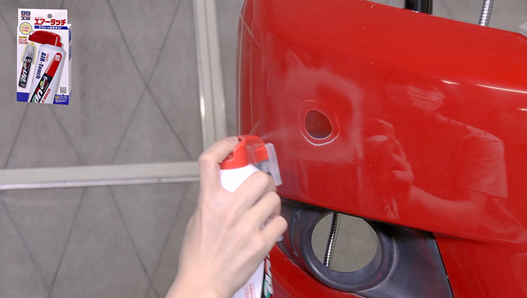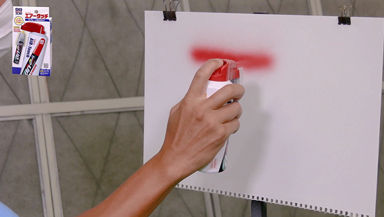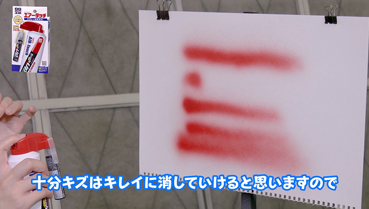 スギオカこのように『エアータッチ』は普通のスプレーと比べるとキリが細かくて、パターンが細く出るというのが特長です。小さいキズに対してもピンポイントで塗装できます。