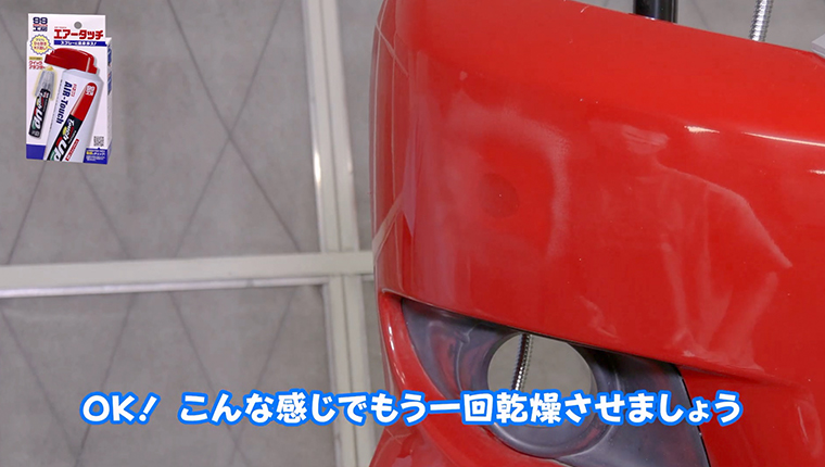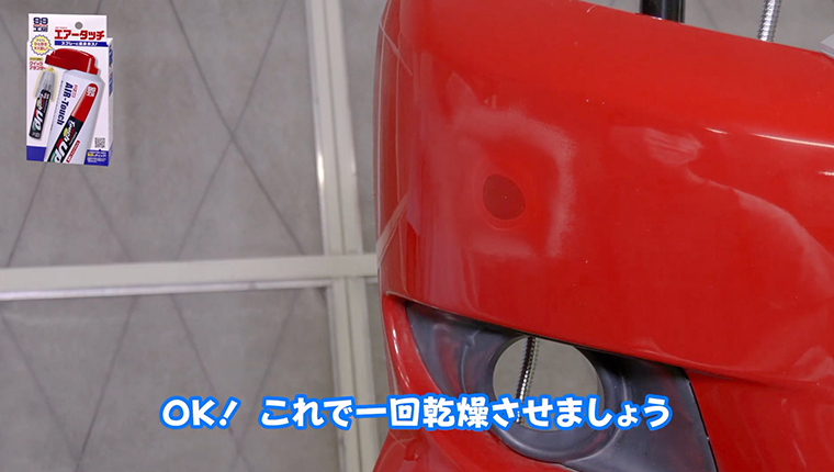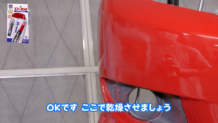 スギオカもうほぼ消えちゃったんじゃないかな。キズの部分が見えなくなっているので、これでキズ消しの塗装は終了になります。1度乾燥させたら最後の作業に移ります。