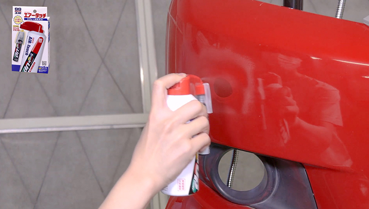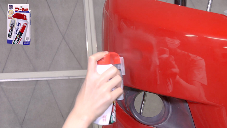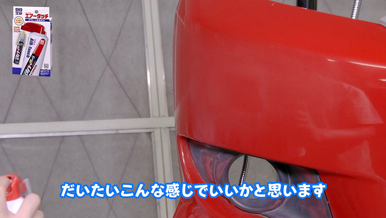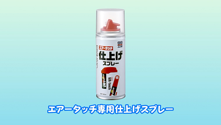 スギオカそうです。ツヤが消えた部分に向けてこの『エアータッチ専用仕上げスプレー』をしっかりと塗装していくイメージですね。じっくり効いてくるので垂れないかなぁと様子を見ながら追加で塗り重ねていって少しツヤが出てきたら止めるという風な仕上げ方ですので、1度やってみてください。