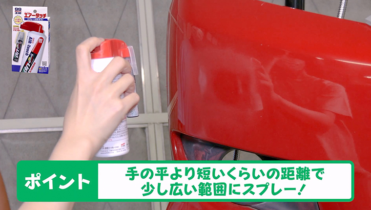 手の平より短いくらいの距離で少し広い範囲にスプレー!