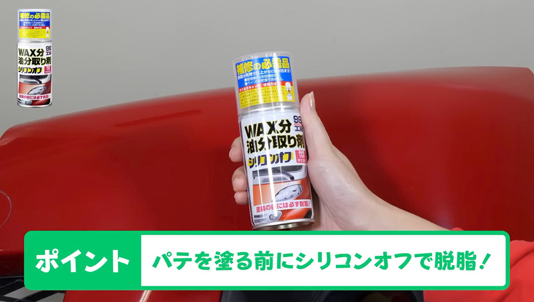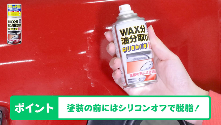 スギオカ続いては下地処理として『シリコンオフ チビ缶』で脱脂をおこないます。