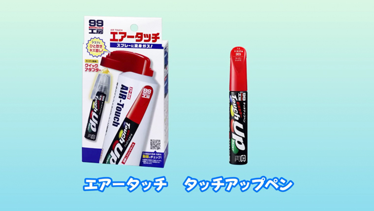 スギオカそれでは、本日このキズに塗装する商品がこちらの『エアータッチ』と『タッチアップペン』です。