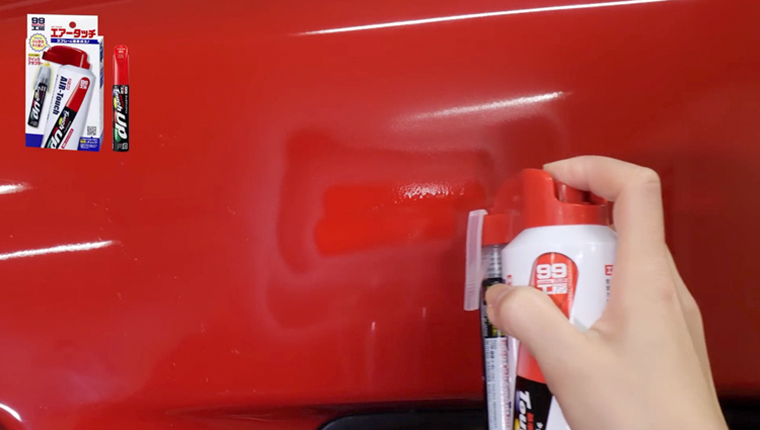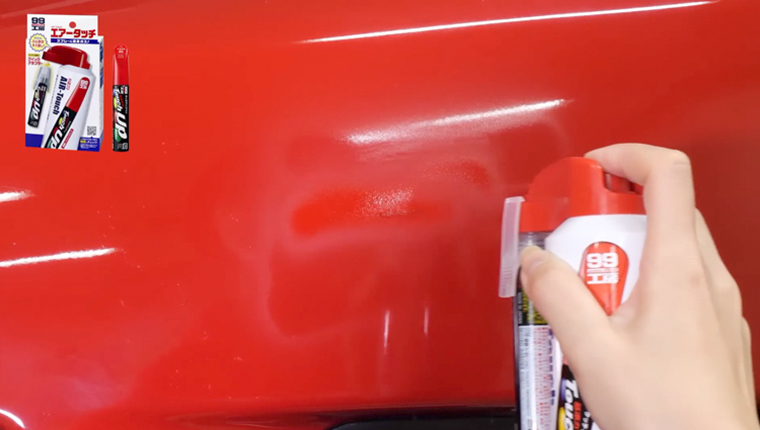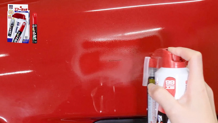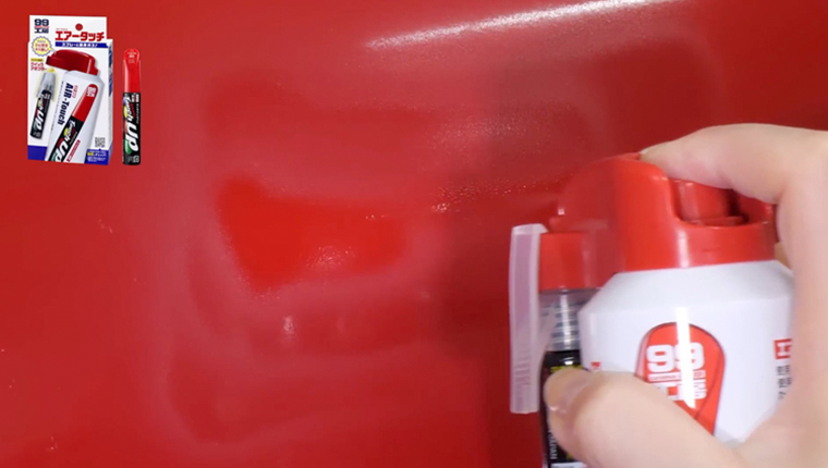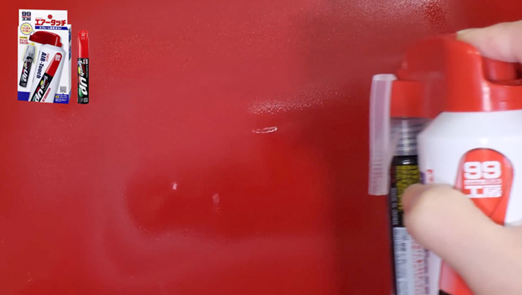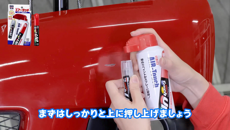スギオカ『エアータッチ』は前回も利用しましたが、今回のようなちっちゃなキズを小範囲でスプレーするのが得意な商品です。すごく垂れにくいので、初めてスプレーされる方にも使いやすい商品ですね。では準備しますが、まずどうするか覚えていますか?