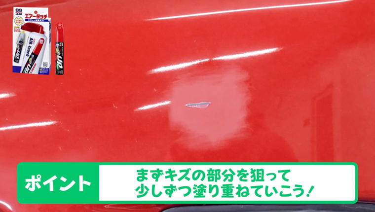 まずキズの部分を狙って少しずつ塗り重ねていこう!