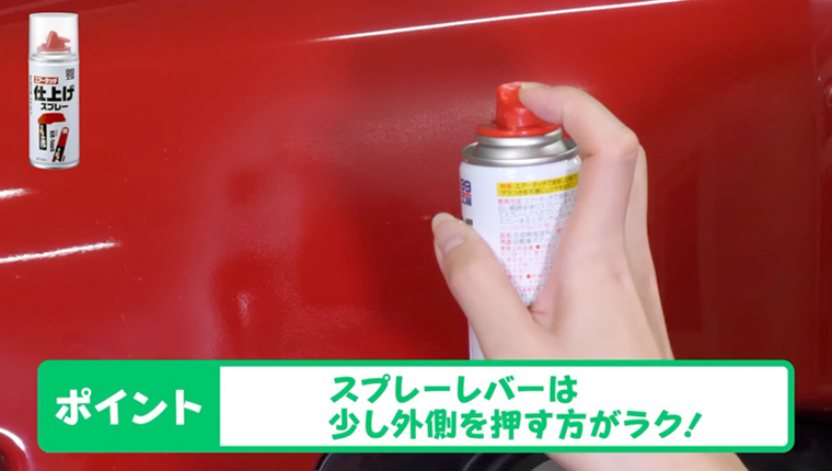 スギオカ少しバンパーから距離を離すようにして広くかかるようにスプレーしましょう。