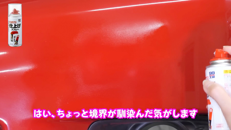 スギオカ塗装した箇所の周辺あたりを見ると、スプレーダストというガサガサした状態になっています。こちらに向けて『エアータッチ専用仕上げスプレー』をスプレーすることで、元々の塗装部分との境界がはっきりしているところを消していくことができます。
