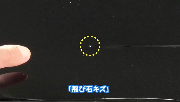 スギオカこちらは走行中に石が飛んできて付くキズのため「飛び石キズ」と言います。洗車など普段のお手入れをしているときにふと気づくキズで、黒い車などの場合はとても目立つのでしっかり直したいですね。放置すると場合によってはサビになることもあるので、きっちりと補修する方法を今日は教えていきます。