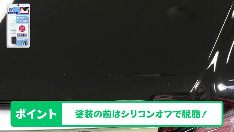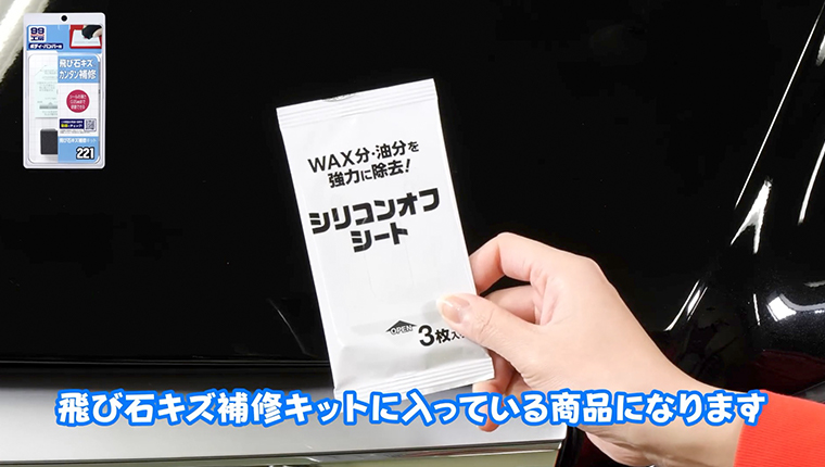 スギオカこちらのシリコンオフシートで脱脂作業をおこなっていきます。こちらは今紹介した『飛び石キズ補修キット』の中に入っているので、別で用意する必要はありません。