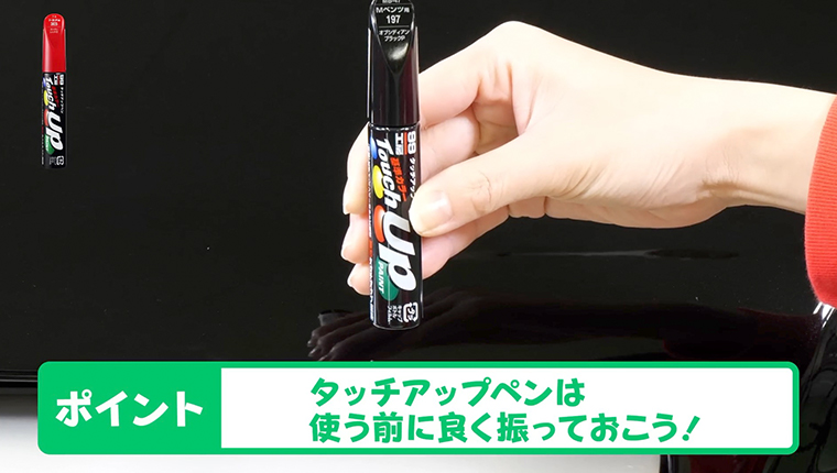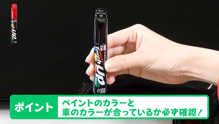 スギオカ最初に確認したいのは、車の塗装と同じ色の『タッチアップペン』を選んでいるかどうかということです。