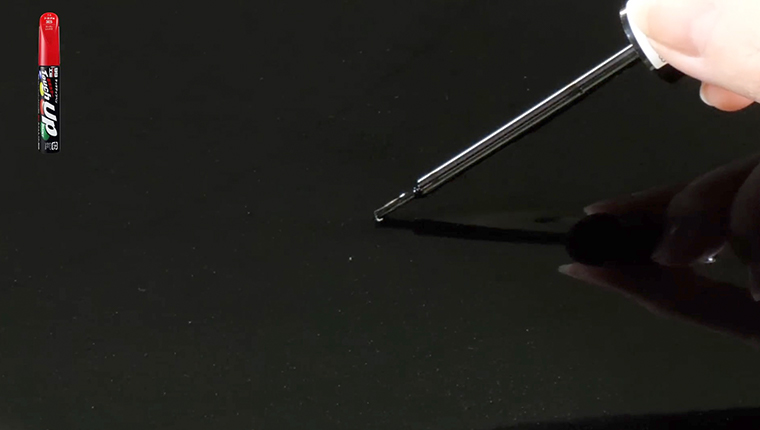 スギオカ『タッチアップペン』を塗る際はキズ部分にベタっと塗るのではなく、点を打つように埋めるイメージですると上手に塗れると思います。