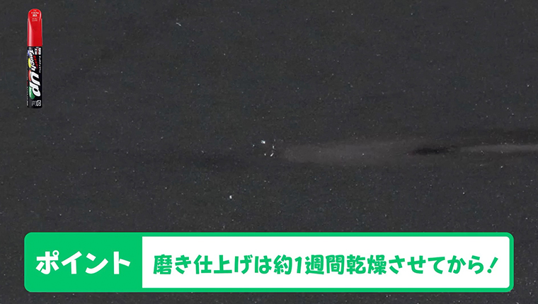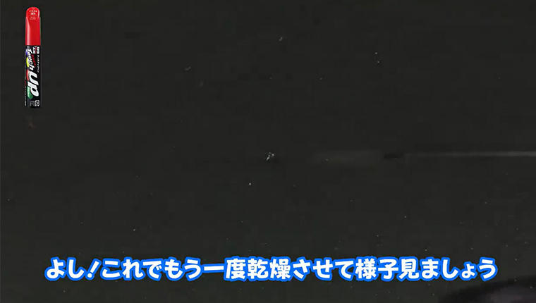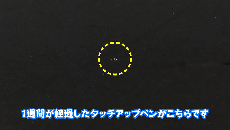 スギオカ3回の塗装が終了しまして、キズもしっかり隠れていますね。確認してほしいことは、元の塗装より『タッチアップペン』の塗装が少し高くなっているかどうかです、1度触ってその状態なら塗装は完了です。