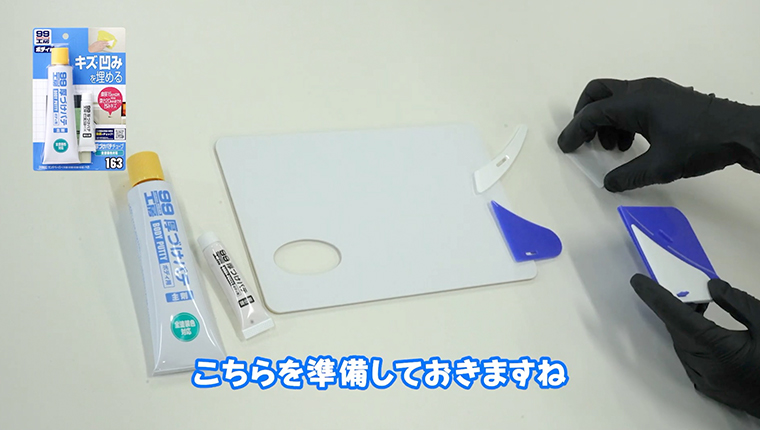 スギオカそれではパテ作業に使用するアイテムを紹介していきます。