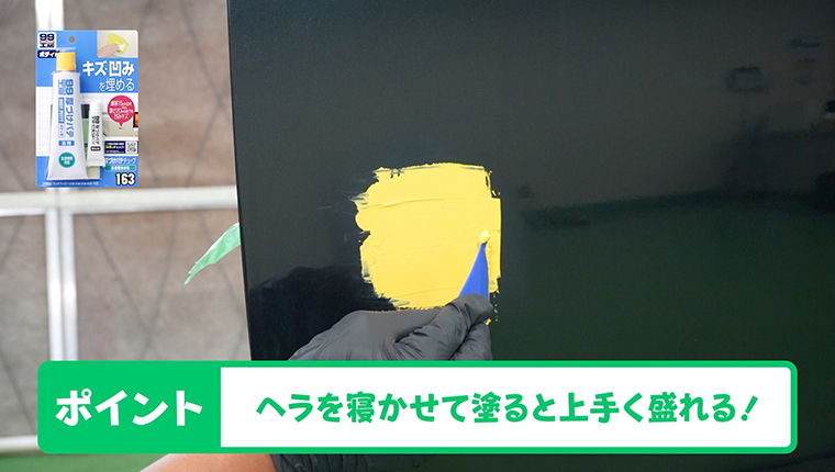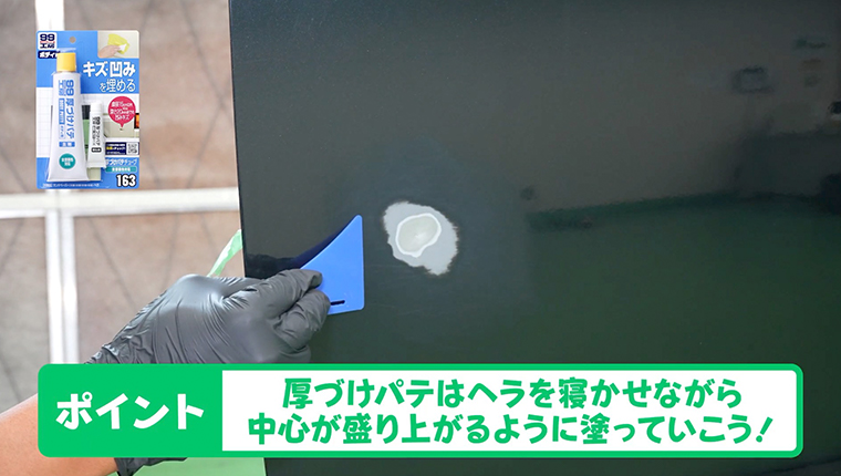 厚づけパテはヘラを寝かせながら中心が盛り上がるように塗っていこう!