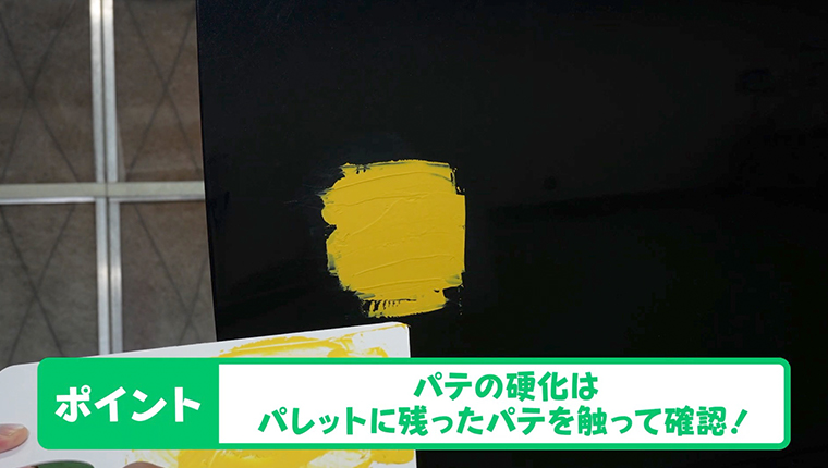 スギオカそうですね、このようにしてパテをへこみの部分に押し込むことで埋めることができるので、塗る際は意識して作業するようにしましょう。