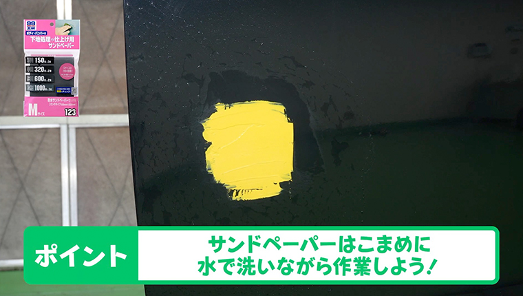 スギオカあと必ず汚れたサンドペーパーは水で洗って、パテのカスをしっかり落としてから研磨してください。