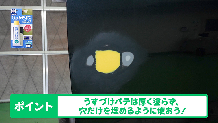 うすづけパテは厚く塗らず、穴だけを埋めるように使おう!