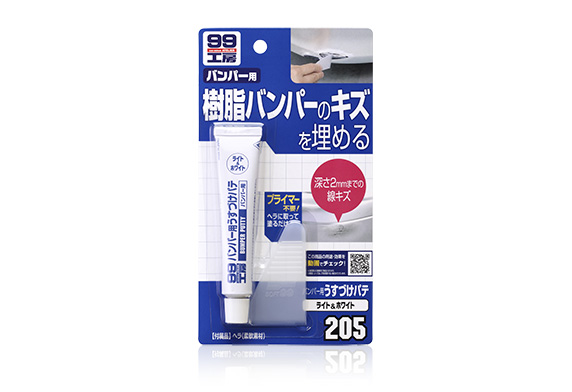 バンパープライマー不要でご使用いただけます。曲面の多いバンパーに便利なフレキシブルパテヘラを採用。