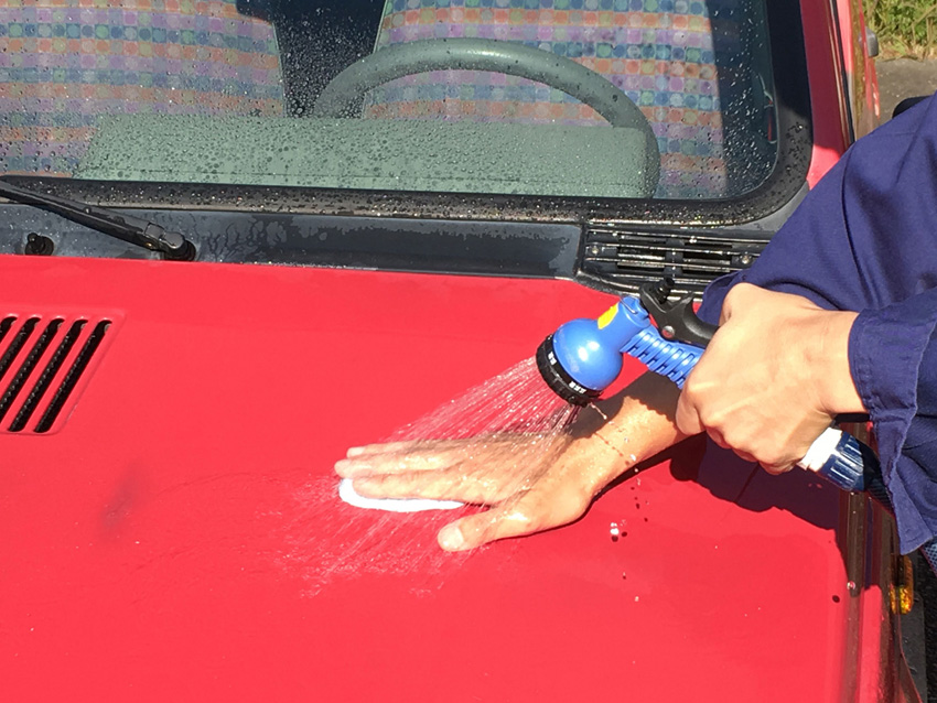みなさん、こんにちは。 前回は『ねんど状クリーナーミニ』を利用して、塗装に刺さった頑固な鉄粉などの異物の除去を行いました。 塗装面はまだくすんだ印象ですが、塗装表面はつるつるの状態にはなっています。 今回はいよいよ、劣化…