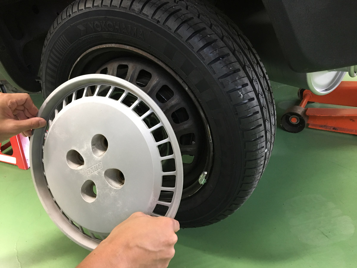 ※他のホイールキャップやスチールホイールも同様に作業をしておきます。