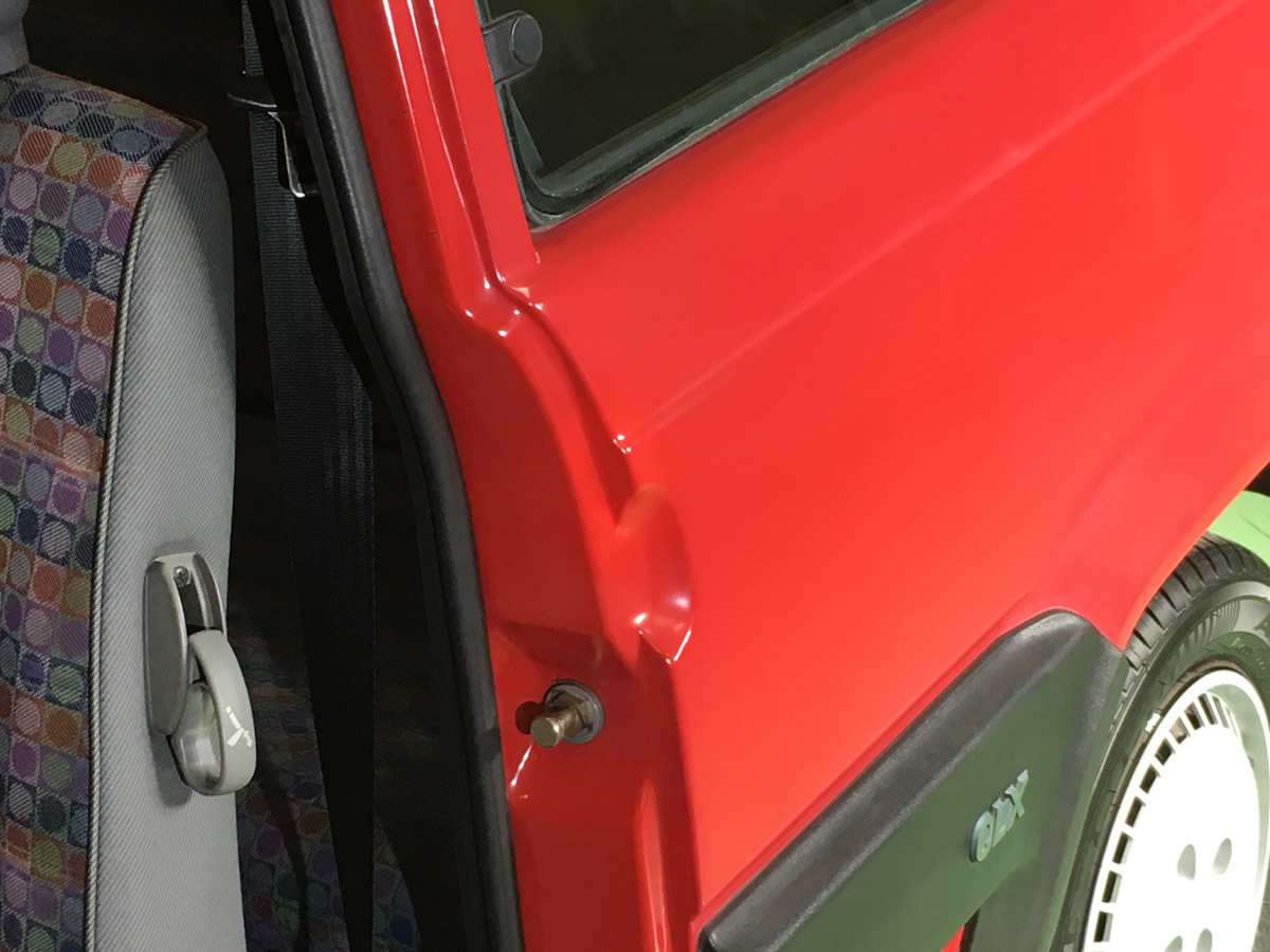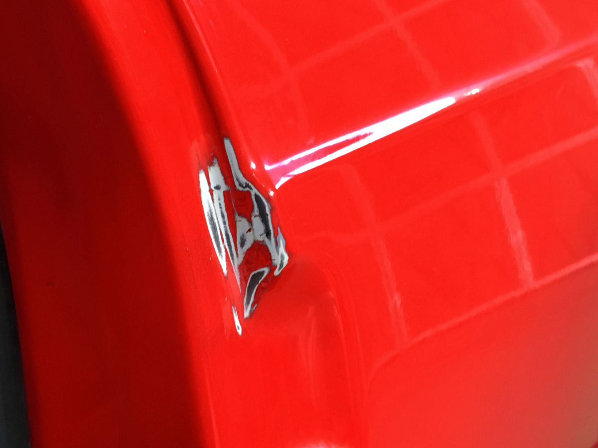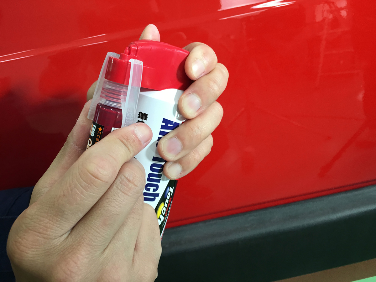 さて、今回はコンパウンドのクリーニングで元の赤さを取り戻しましたボディ塗装の所々に付いた“小キズ”補修に挑戦してみたいとおもいます。塗装が鮮やかになると、ちょっとした塗装の小キズや剥がれ等も気になるものです。長く使われてきた車ですから、さまざまなキズは仕方ないものです。