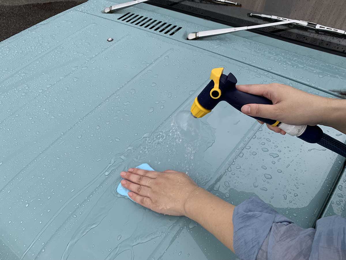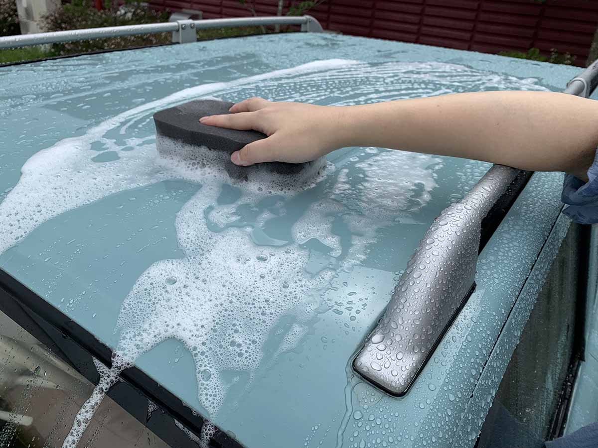 足回りを洗った後は、ルーフから順にボディを洗っていきます。