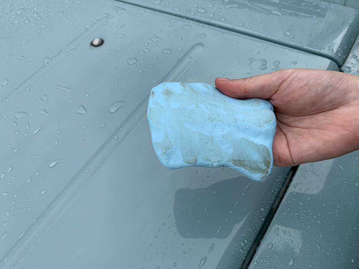 シャンプー洗車とすすぎが終わったので、次に『ねんど状クリーナー ミニ』で鉄粉取りの作業をおこなっていきます。