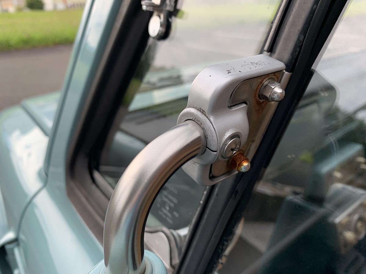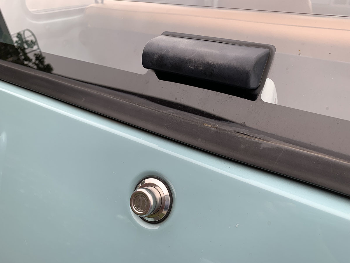 やっぱりここにもありました、サビ。トランクを開けるときの金具は特にサビサビ。シルバーなので遠目からでも目立ちます。ゴムパーツもくたびれています。