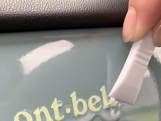 角から少しずつヘラでこそぎ落とすようなイメージで。ヘラで周囲をキズつけないようにゆっくり慎重にはがしていきます。