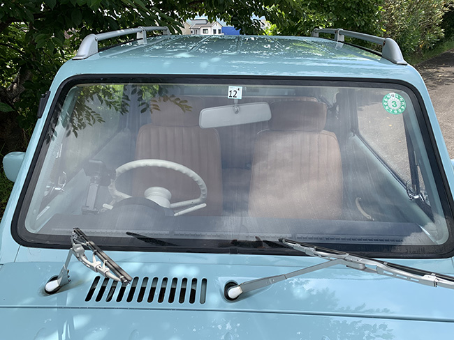 「NISSAN-PAO(日産:パオ)」のガラスクリーニングをしてガラス撥水剤を塗る