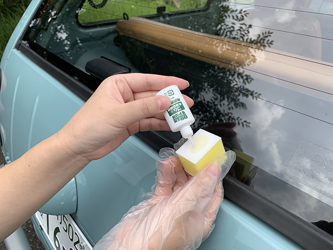 スポンジに液をつけたら、あとは塗っていくだけ。