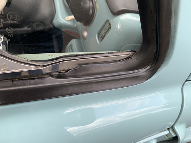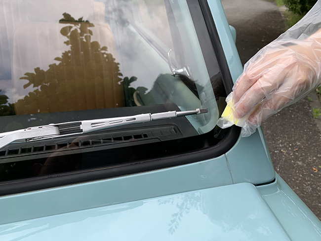 続いて、三角窓のあるサイドウインドウのモールも同じ手順で施工いきます。