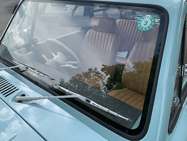 原因は紫外線、気温上昇による熱の影響や、雨による汚れなど…残念ながらどうしてもレトロカーでは避けられないものです。そして、ここが白くなっていると見た目があまりよくない…ということで、定期的にメンテしておくこともおすすめのパーツです。
