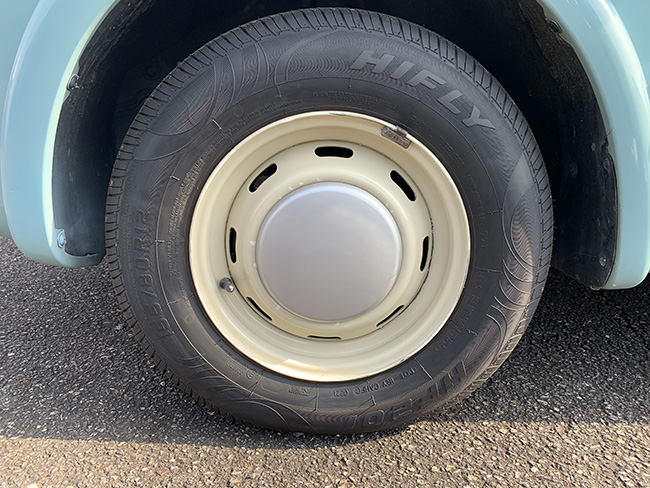 『タイヤブラックワックス』はどちらかというと自然なツヤをタイヤに与える印象があり、もっとパキッとしたツヤを出すタイヤワックスもあったのですが、パオの柔らかい雰囲気と同じ歴史の長い物同士というイメージがぴったりだなと思って『タイヤブラックワックス』に決めました。
