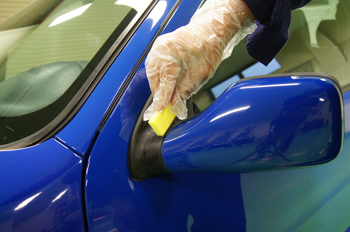 次に同じくドアミラーの未塗装樹脂部分にも塗っていきます。