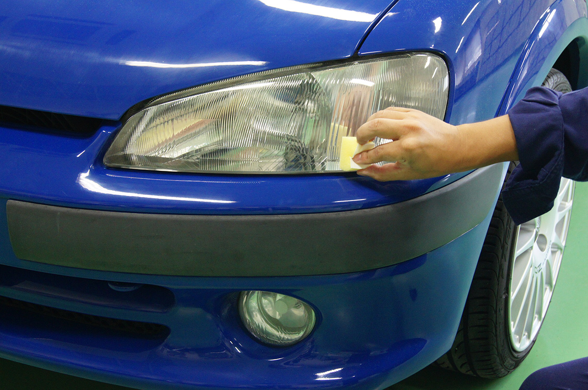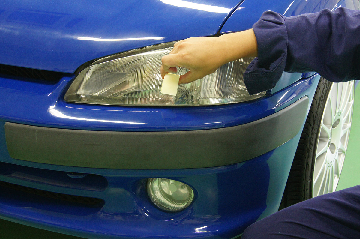 かなりヘッドライトの透明度が上がってきました。この後、光沢を出しその状態を長期間キープさせるため、「ハードトップコート」を塗布してしていきます。