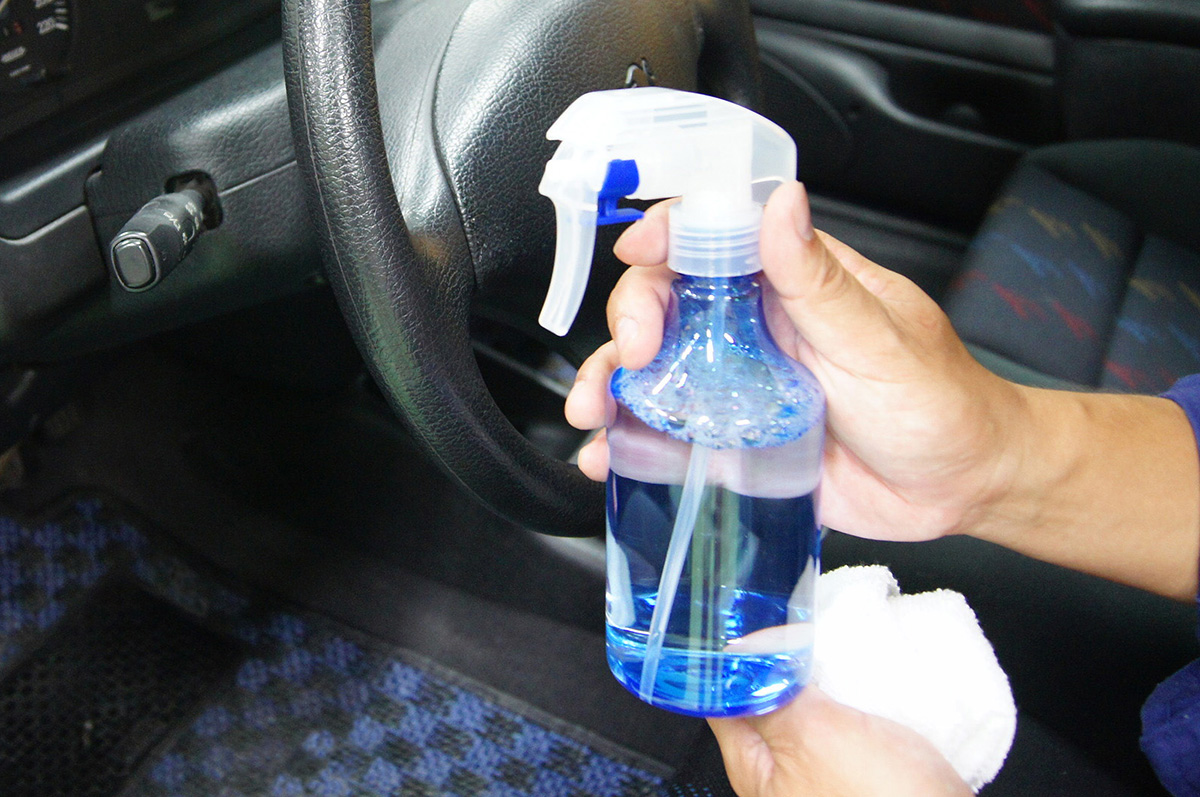 続いてダッシュボード。こちらもタオルにスプレーし、しっかり拭き上げていきます。