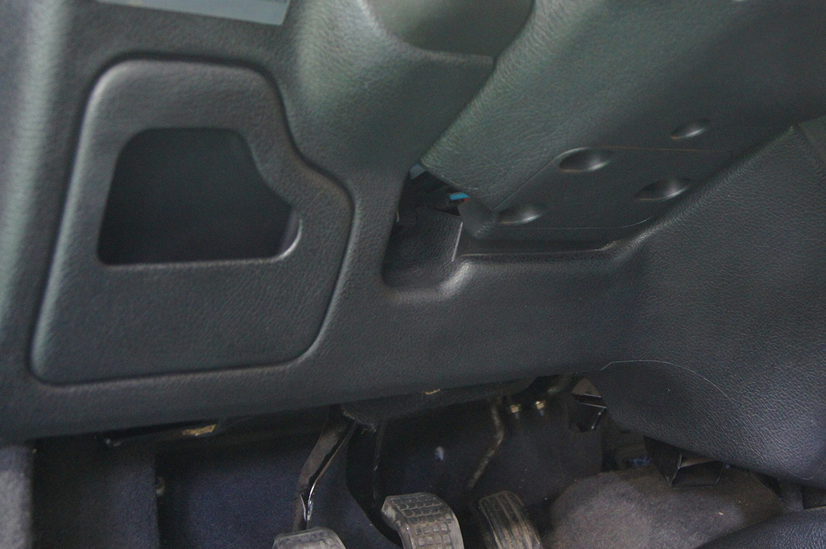 今回、こちらの「PEUGEOT-106」はミッション車という事もあり、靴などが当たった跡でしょうか。 足元に、新製品ではキレイにすることができなかったうっすらとしたキズを発見しました。