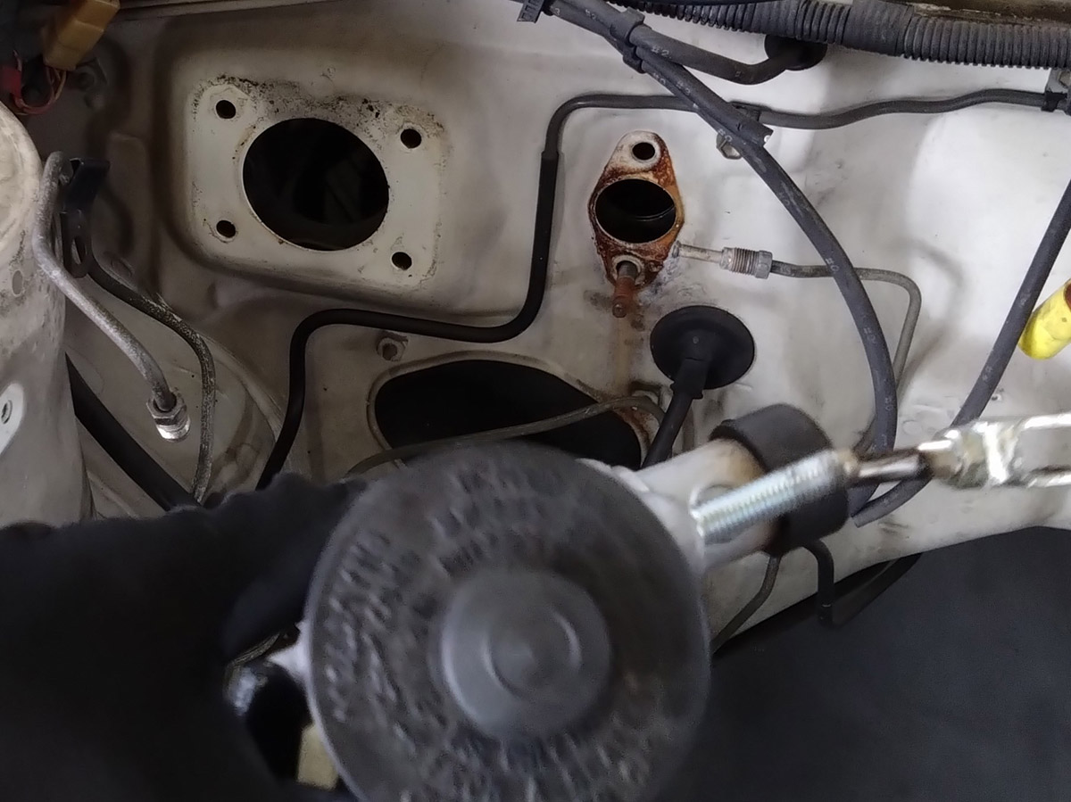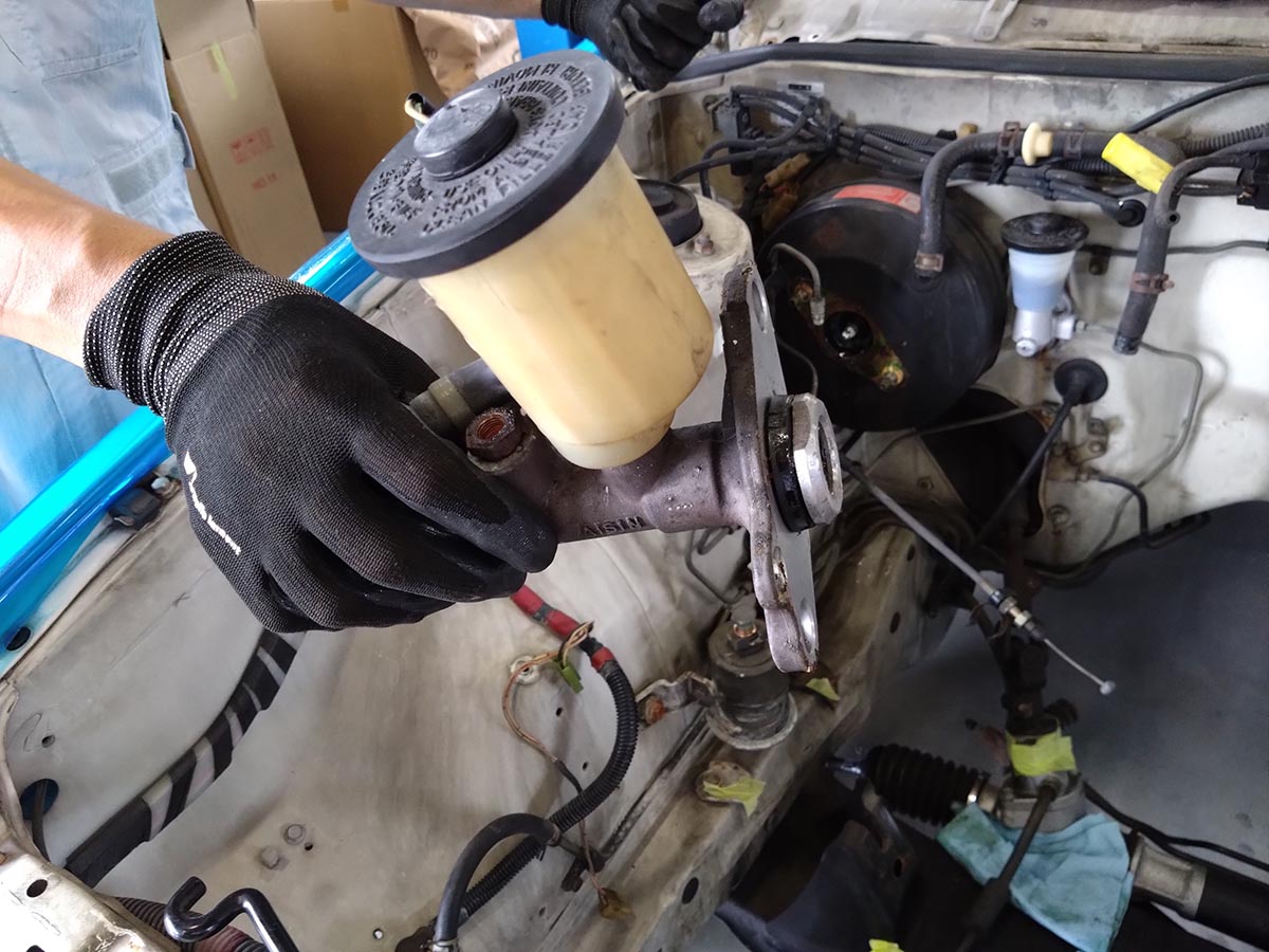 クラッチマスターシリンダーを取り外すとこのようにサビが現れました。フルード漏れなどで交換したんですね。