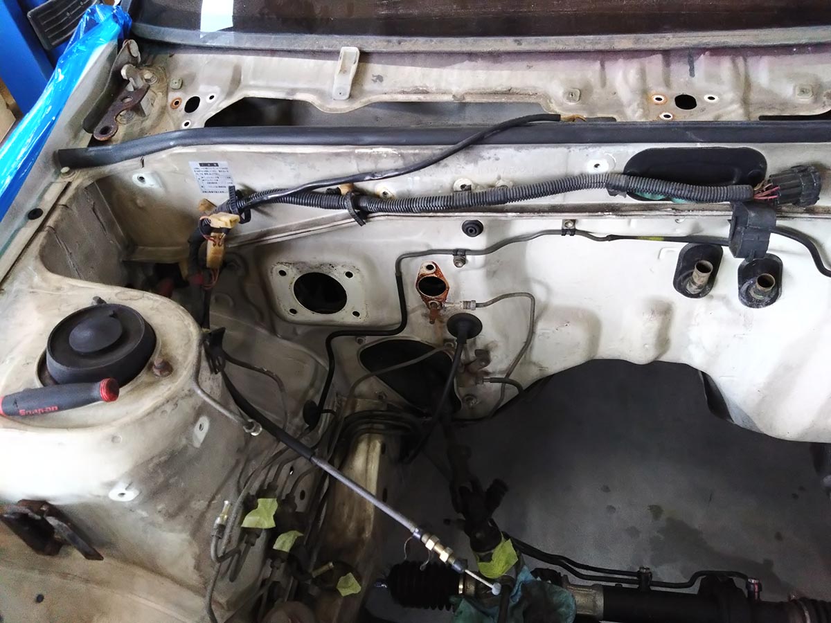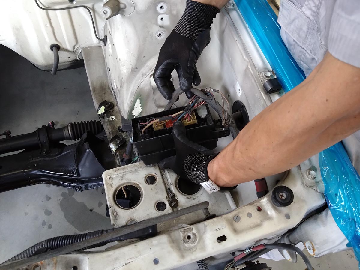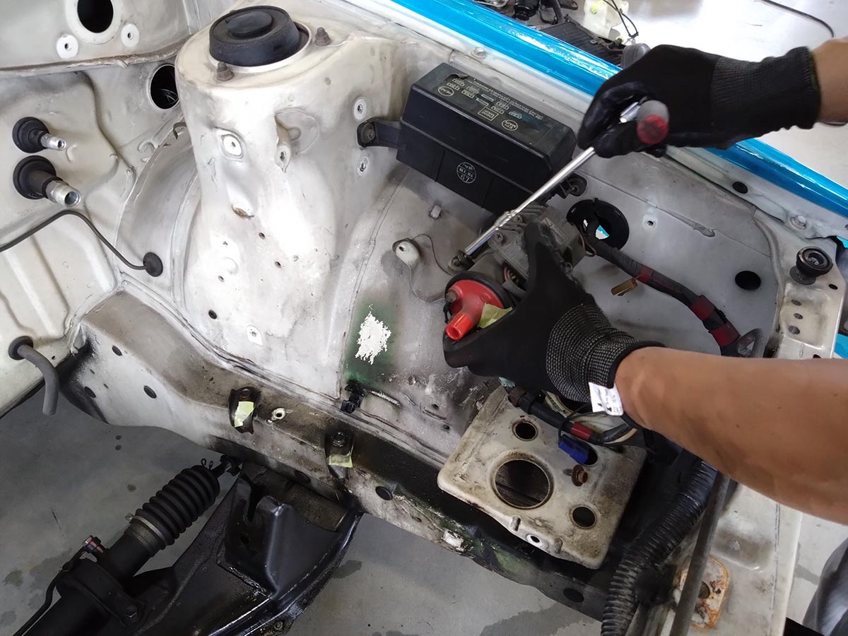 今回は、エンジンルームの塗装に向けた作業の最終章、エンジンルーム内に残った部品や配管を外してエンジンルームを空にしていきます。