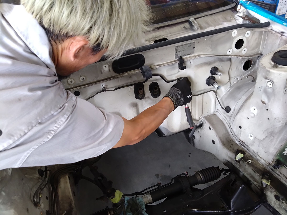 外してもらったスタッフは「トヨタ AE86(ハチロク)」は初めての作業ということでしたが、何度かやったことがあるような手際でした。やっぱりその道のプロですね。