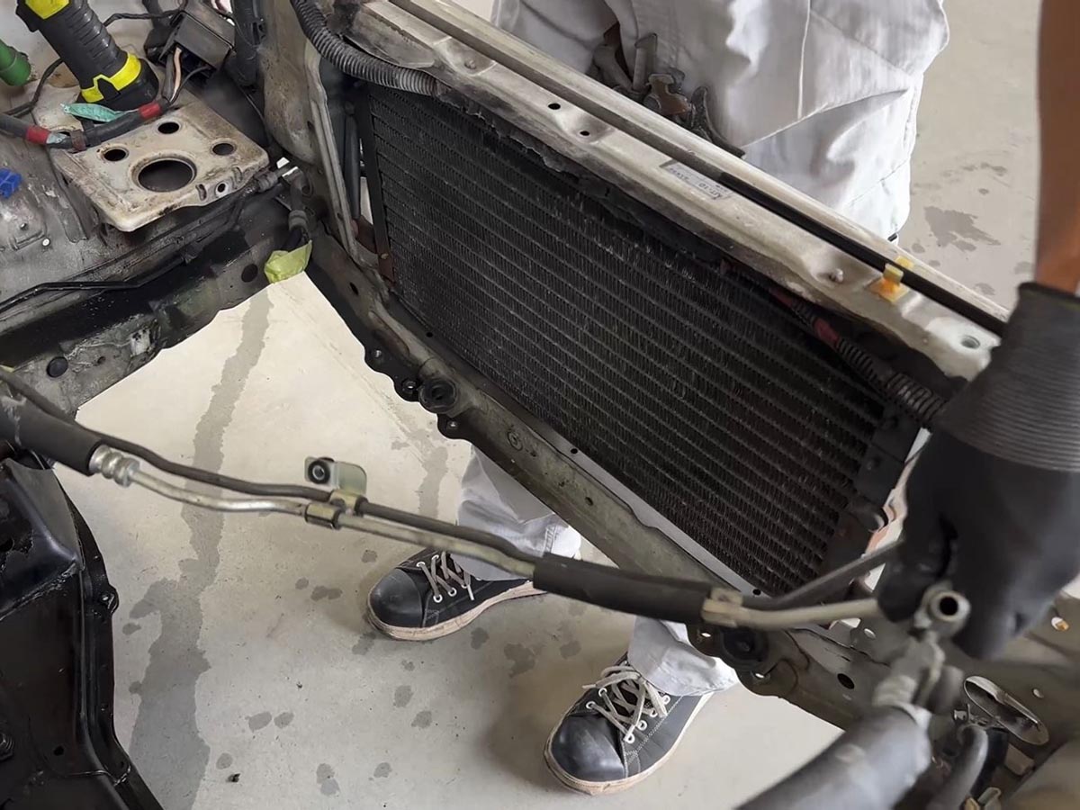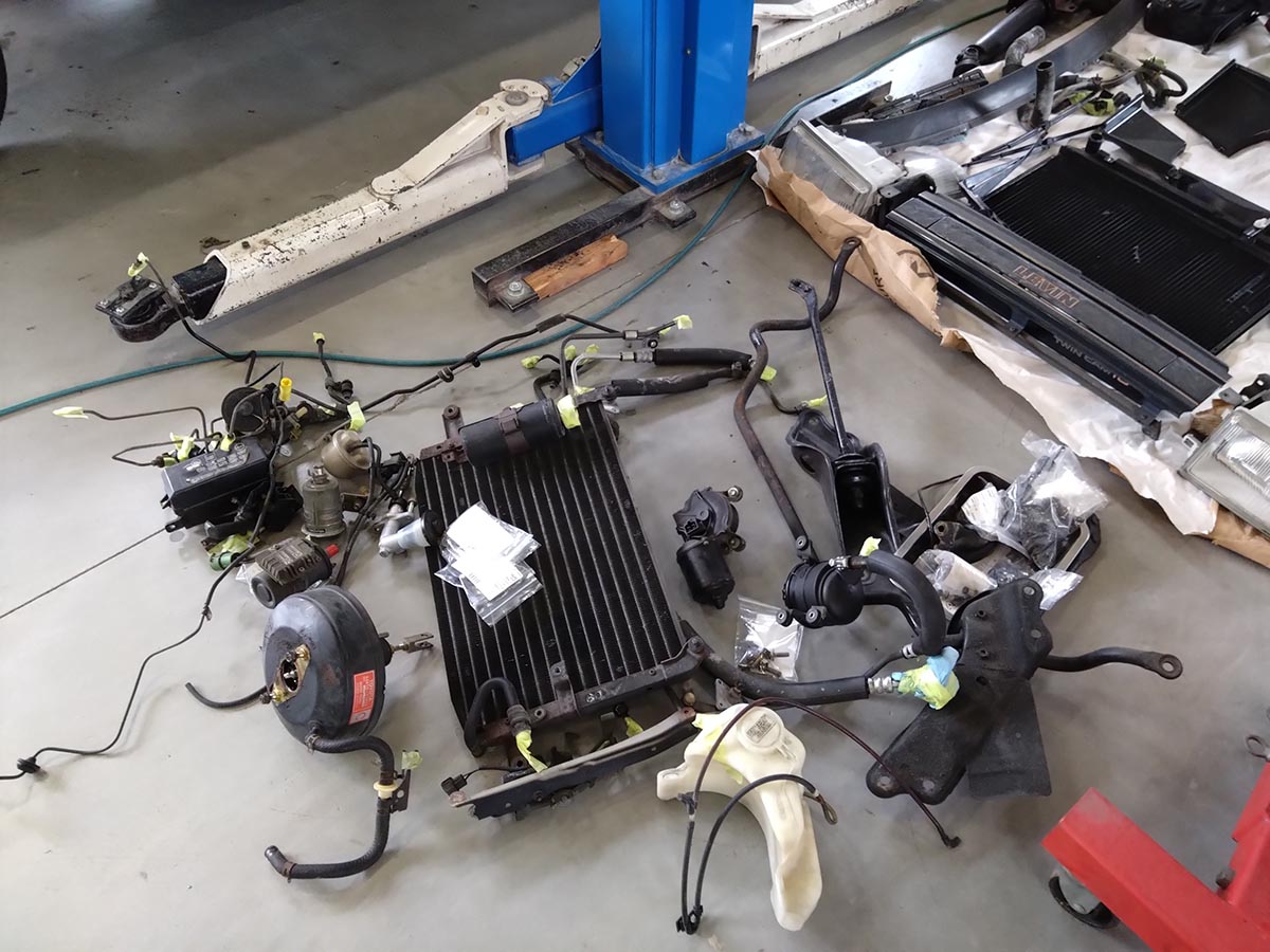 エンジンやトランスミッションなど、大物がなくなったエンジンルームですが、それでもご覧の通り、細かなパーツは複数あります。