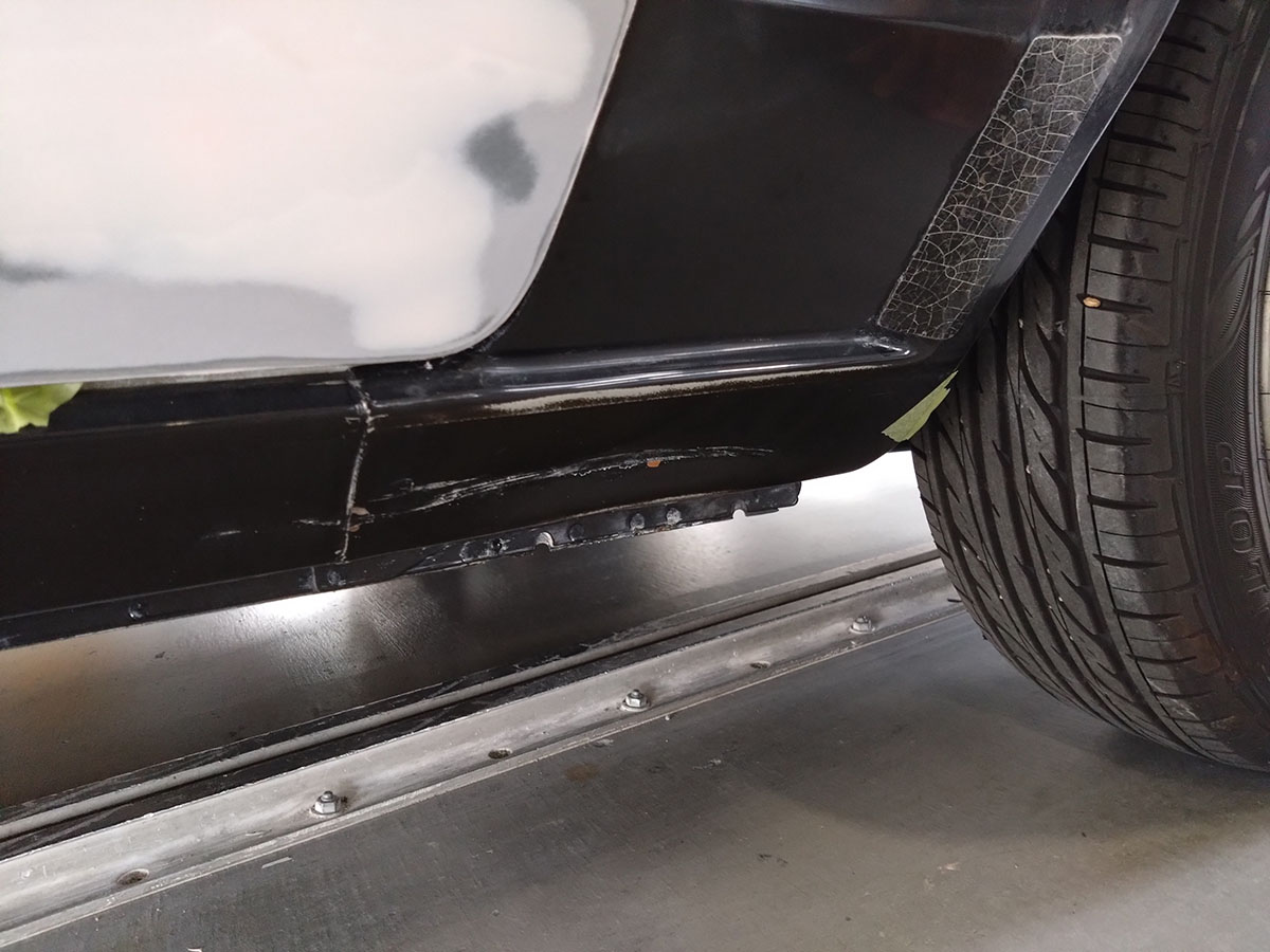 前々回でボディの鈑金がほとんど仕上がった「トヨタ AE86(ハチロク)」ではありますが、1か所、凹みがひどい部分だけは少し時間がかかるため残った状態でした。それがこちらの傷です。