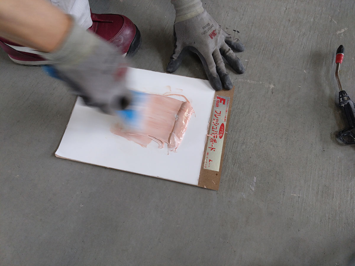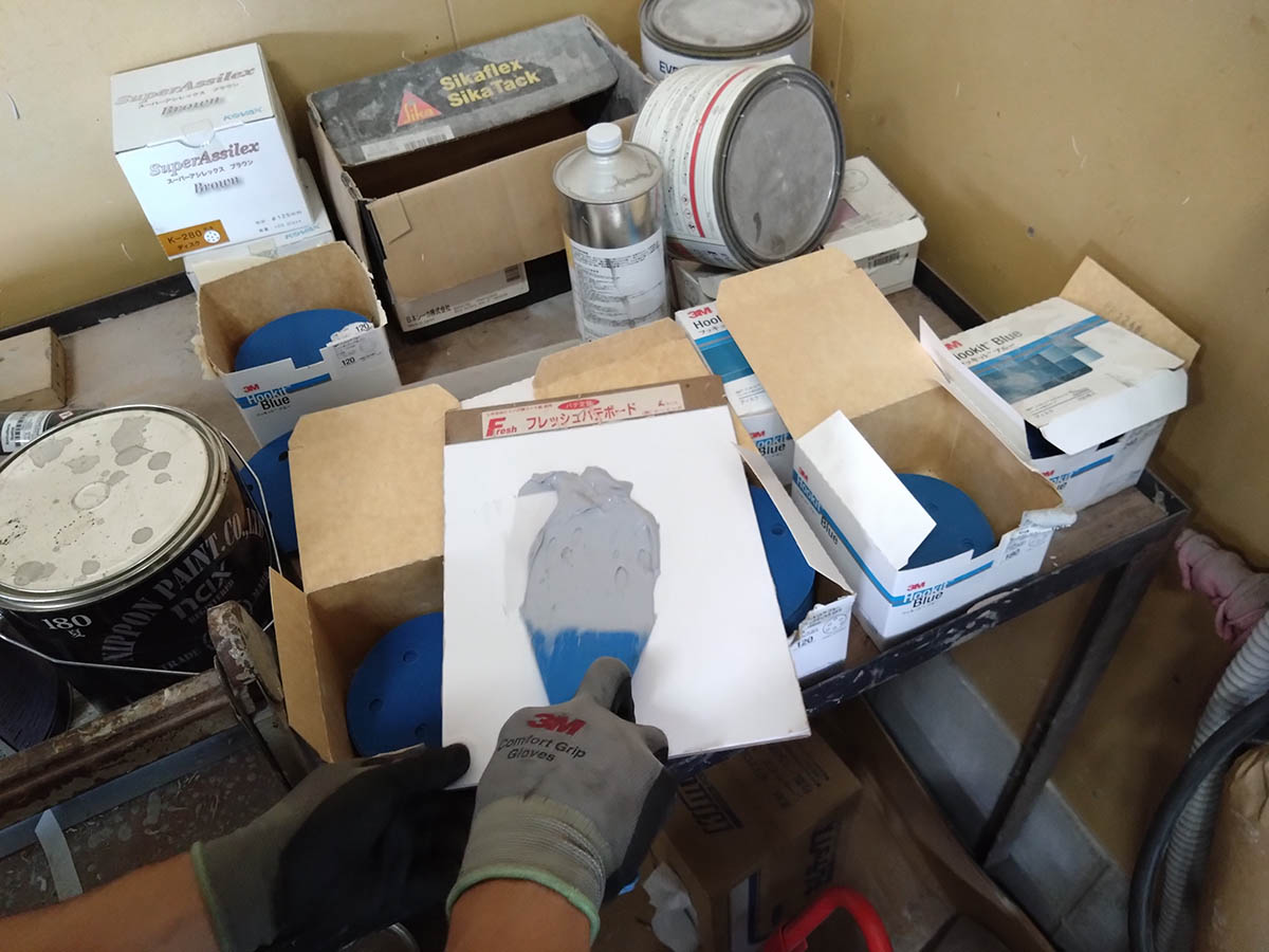 研磨が終わりましたら、この上から細地パテを盛って仕上げていきます。