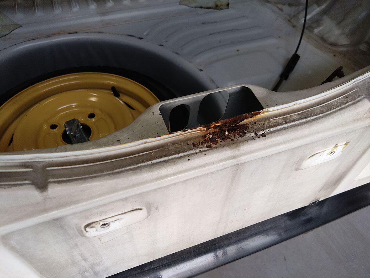 ここは削る厚みがない状態だったので、塗装前に『99工房 赤錆転換防錆剤』を利用してサビの進行を止める処置をすることとしました。