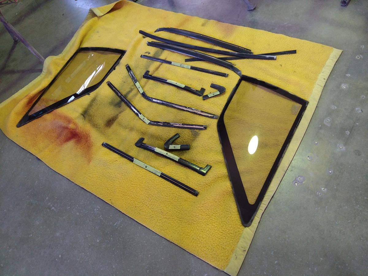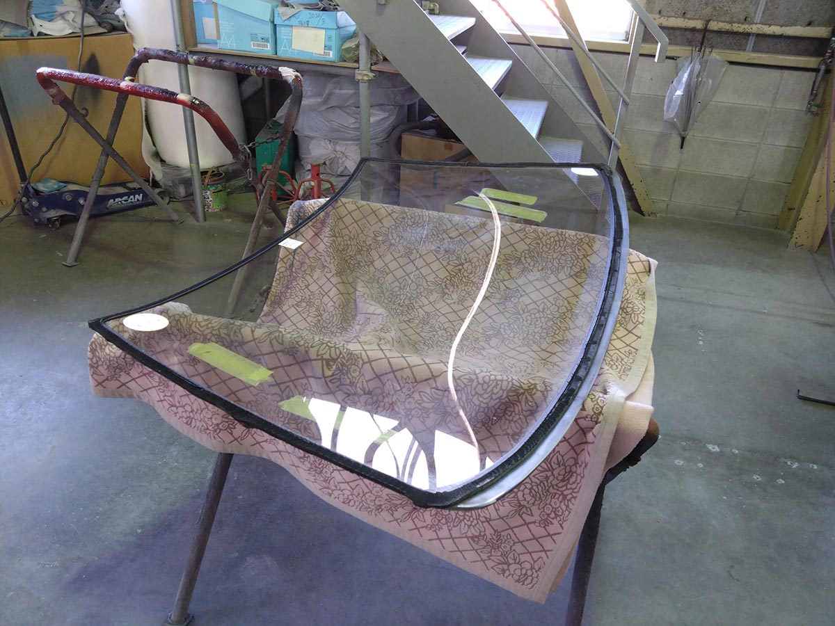 フロントガラスが外れました。想像していたより大変な作業でした・・・
