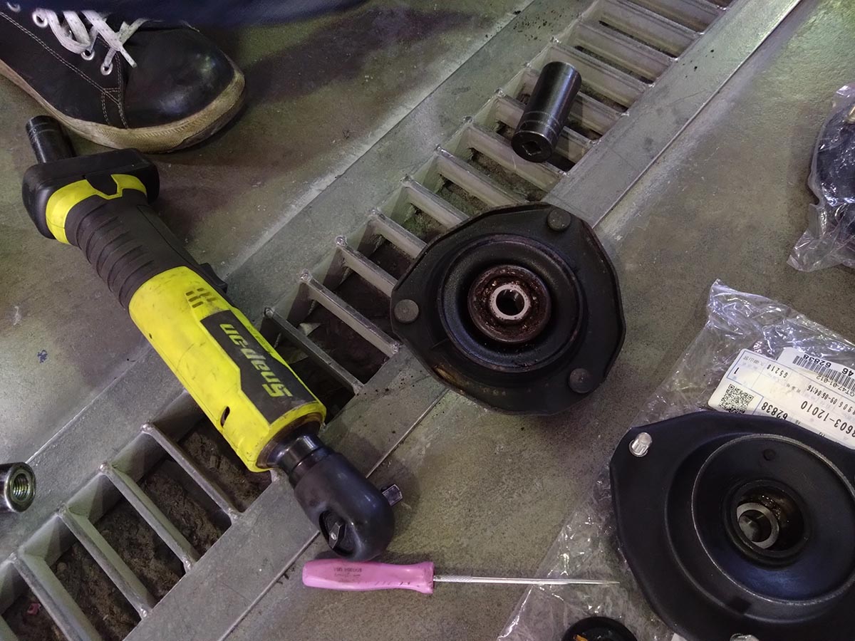 ここからストラットのアッパーマウントを新品に交換していきます。